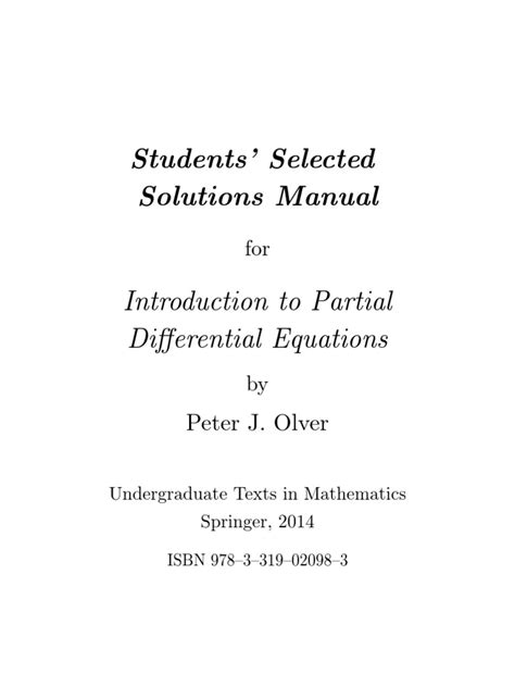 Partial Differential Equations, Student Solutions Manual ... Pdf